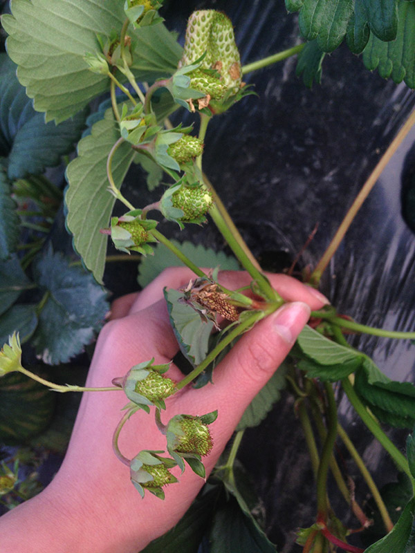 1月25號拍攝,3次用藥后灰霉病控制良好,發(fā)病植株未繼續(xù)擴散,草莓正常掛果