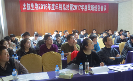 會上,公司各區(qū)域負責(zé)人就2016年的銷售情況做了總結(jié)匯報,全年總銷量比去年增長70%,太抗在各區(qū)域的品牌影響力顯著提升,尤其是今年新上市的產(chǎn)品——枯芽春?枯草芽孢桿菌在云南區(qū)域熱賣得到了代理商的極大肯定和全力推廣,太抗哈茨木霉菌也一度出現(xiàn)供不應(yīng)求的斷貨現(xiàn)象;各銷售精英紛紛上臺分享了在工作中遇到的難題及解決方法,用自身一段段經(jīng)歷證實了那句話:賣產(chǎn)品,首先要賣的是自己。只有自身的專業(yè)知識讓客戶信服,只有自己的敬業(yè)精神讓客戶滿意,只有自己的不辭辛勞讓客戶認可,才能讓客戶從心底里接受并信任我們的產(chǎn)品;技術(shù)經(jīng)理們也用一系列實實在在的圖片數(shù)據(jù)講解了一年來各室內(nèi)、大田試驗結(jié)果,提煉出太抗系列產(chǎn)品的新賣點。