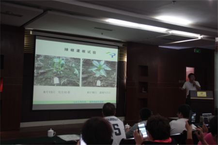 四川太抗華北區(qū)域總經(jīng)理張克東就太抗?系列產(chǎn)品、當今農(nóng)藥發(fā)展方向和趨勢進行了詳細的剖析和講解——現(xiàn)階段正處于未來農(nóng)業(yè)發(fā)展的風口,規(guī)模農(nóng)業(yè)、現(xiàn)代農(nóng)業(yè)示范園和生態(tài)農(nóng)業(yè)是發(fā)展方向,隨農(nóng)業(yè)轉(zhuǎn)型而變的是農(nóng)資企業(yè)的轉(zhuǎn)變,量身定制的作物整體解決方案、專業(yè)的技術(shù)指導與服務、產(chǎn)前產(chǎn)中產(chǎn)后全程服務、創(chuàng)新的可持續(xù)的解決方案是農(nóng)資企業(yè)生存的必選之路,連作障礙和新生病蟲草害是現(xiàn)代農(nóng)業(yè)面臨的難題與痛點。緊接著他介紹了太抗?枯芽春TM和太抗?哈茨木霉菌的優(yōu)勢及其在作物病害上的作用機理。